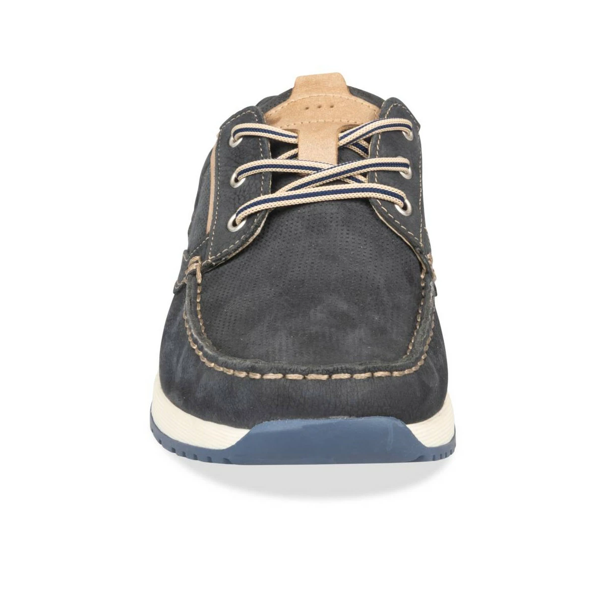 Conçue à l’origine pour la navigation, la chaussure bateau s’est intégrée au style urbain et revient saison après saison dans nos dressings ! Ce modèle bleu marine en cuir véritable est doté d’une semelle épaisse blanche inspirée de la basket, pour un look casual et tendance ! La chaussure est agrémentée de jeux de surpiqûres et de lacets bicolores. Une valeur sûre !
