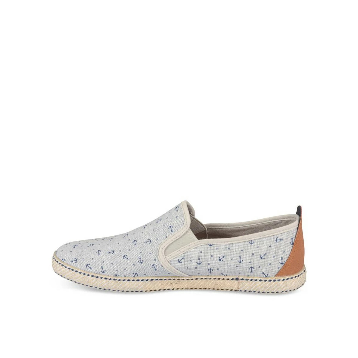 Cap sur les vacances avec cette espadrille grise ! Elle présente des motifs ancre rappelant l’univers marin. La semelle en corde, caractéristique de l’espadrille, est agrémentée de jolis liserés bleus. Le contrefort marron apporte une belle touche de contraste !
